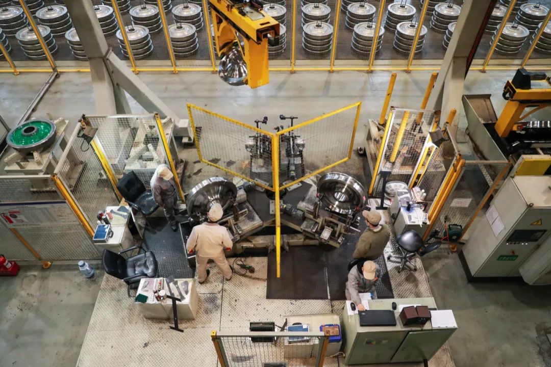 在这里,已经可以看到车轮的雏形了。“塑型”之后,还要进行热处理。如果说“塑型”是外部打造,热处理便是内部修炼。内外兼修,车轮的性能才更加稳定。再经过一系列的自动化精加工,车轮便生产出来了。