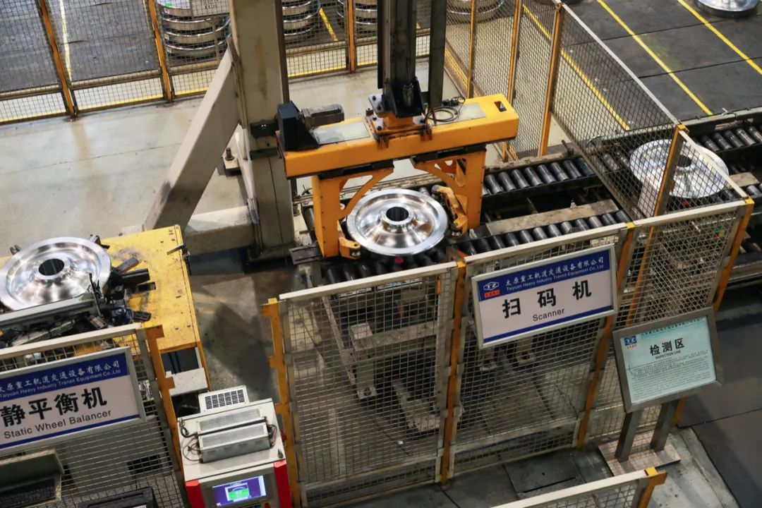 这是一条年产车轮40万片的生产线,也是目前国内自动化程度最高的车轮生产线。从这里生产出来的车轮,可用于高铁、地铁、大型客车等。